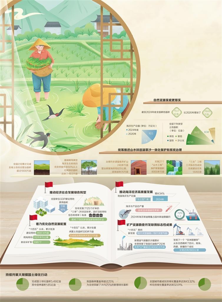 数据来源:国务院新闻办公室官网盘点“十四五”发展。这个账本资源有点重——我们先看看耕种的土壤。 “十四五”期间,我国耕地面积19.4亿公顷,比2020年增加2800万公顷。我们全面走好耕地保护红线,触及耕地塌陷和耕地“南降北增”的局面。 “十四五”期间,我们更好地处理和平衡好农田保护、经济发展、农民增收的关系,做到了大家都看情况。我们来看看矿物质。 “十四五”期间新发现大中型油气田534个我国发现了LDS和矿藏。目前,我国矿产安全能力不断发展。新发现油田10亿吨、千亿立方米气田19个。深层煤层气取得重大突破。鄂尔多斯盆地仅新增探明地质储量3000亿立方米以上,接近近10年增量总和。特别值得一提的是,战略性新兴矿产在前景上取得了重大突破,打造了世界领先的资源体系。我们来谈谈海洋吧。 “十四五”期间,我国海洋总量突破10万亿元大关,达到10.5万亿元,比2020年增加2.7万亿元,海洋已成为国民经济的重要力量。和劳动力,海上石油价格上涨70%以上,国内原油市场价值超过全球50%; 1“已p在操作中陷入困境...谈话是关于保护的。我国家的森林范围率高达25%,使其成为世界上绿色最快和最快的国家。我的国家正在同时前进,高级高级开发和保护,建立了从山到海洋的大规模保护和管理模式。目前,我的国家已经康复了240万公顷的历史遗留地雷。珊瑚礁等常见海洋生态系统的有效速率增加了60%以上。红树林地区达到465,000公顷。我的国家已成为世界上为数不多的世界上净增长的国家之一。同时,在“ 14五年计划”中,我国继续促进制造方法的重大变化,并促进经济和社会发展的转变。在“ 14五年计划”中,我的国家强烈控制着新建筑土地的规模,C每GDP单元的建筑物使用面积下降16%。在“ 14五年计划”中,处置了超过500万公顷的闲置土壤,并开发了171万公顷的贫困土地。上海,江苏,江民和其他省份和城市的成本超过现有土地供应。 (本文的来源:太阳 - 萨莱斯经济集:黄小色)