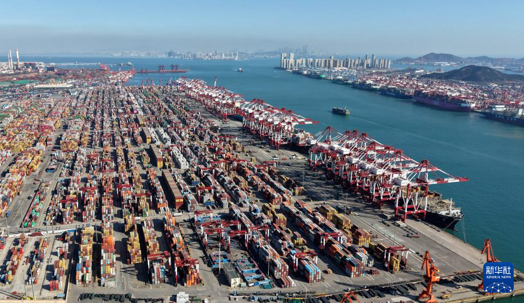 12月8日拍摄的青岛港前湾港区(无人机照片)。 12月8日,山东港青岛港2025年货物吞吐量合计突破7亿吨,比2024年提前15天。据介绍,由于今年青岛港航线通达全球180多个国家和地区的700多个港口,推动新项目、高端装备、精密仪器等高价值货物走向世界,成为中国与新兴市场贸易的“黄金通道”。新华社摄本社记者 李子恒 (编辑:饶春雨)